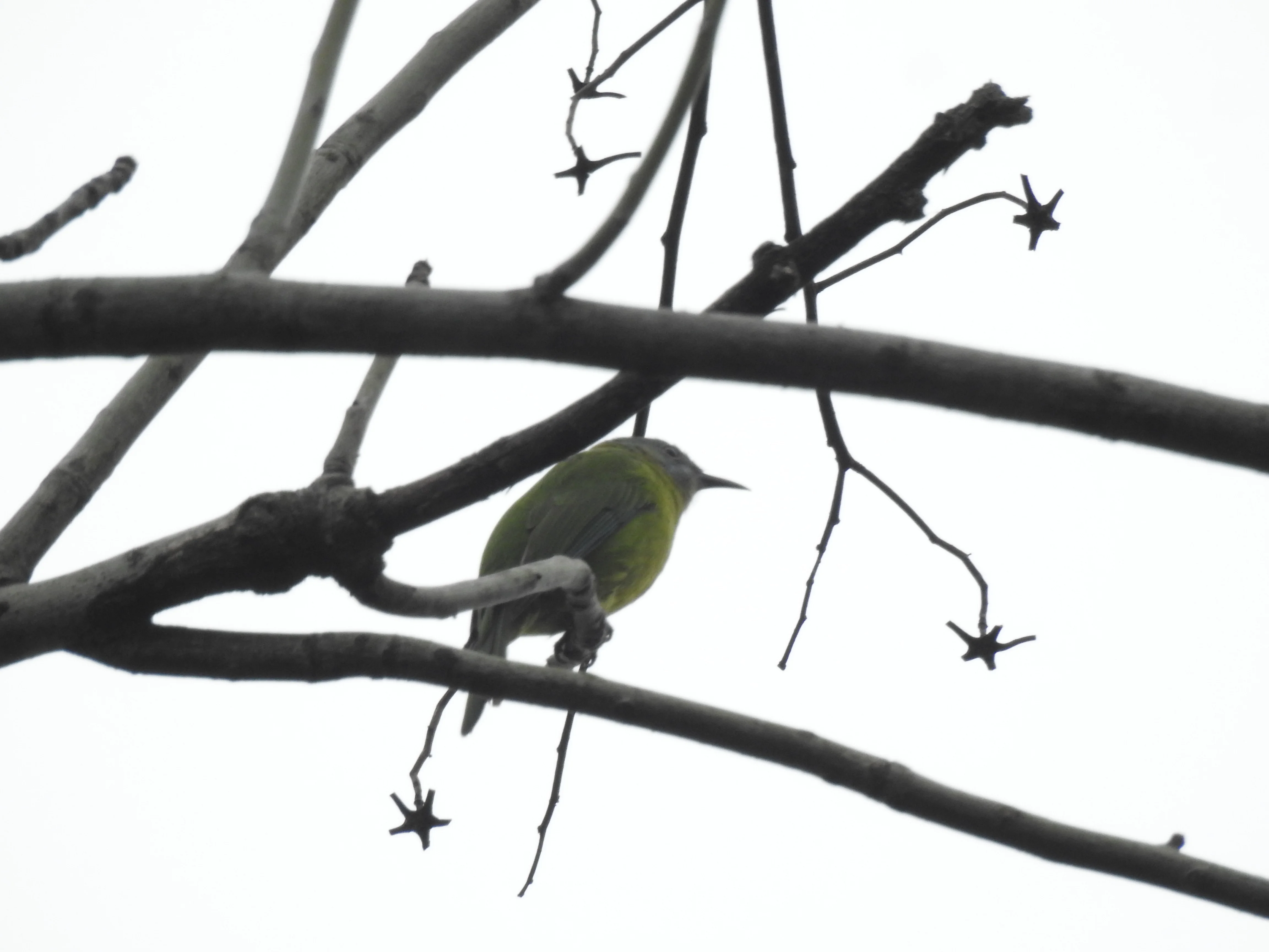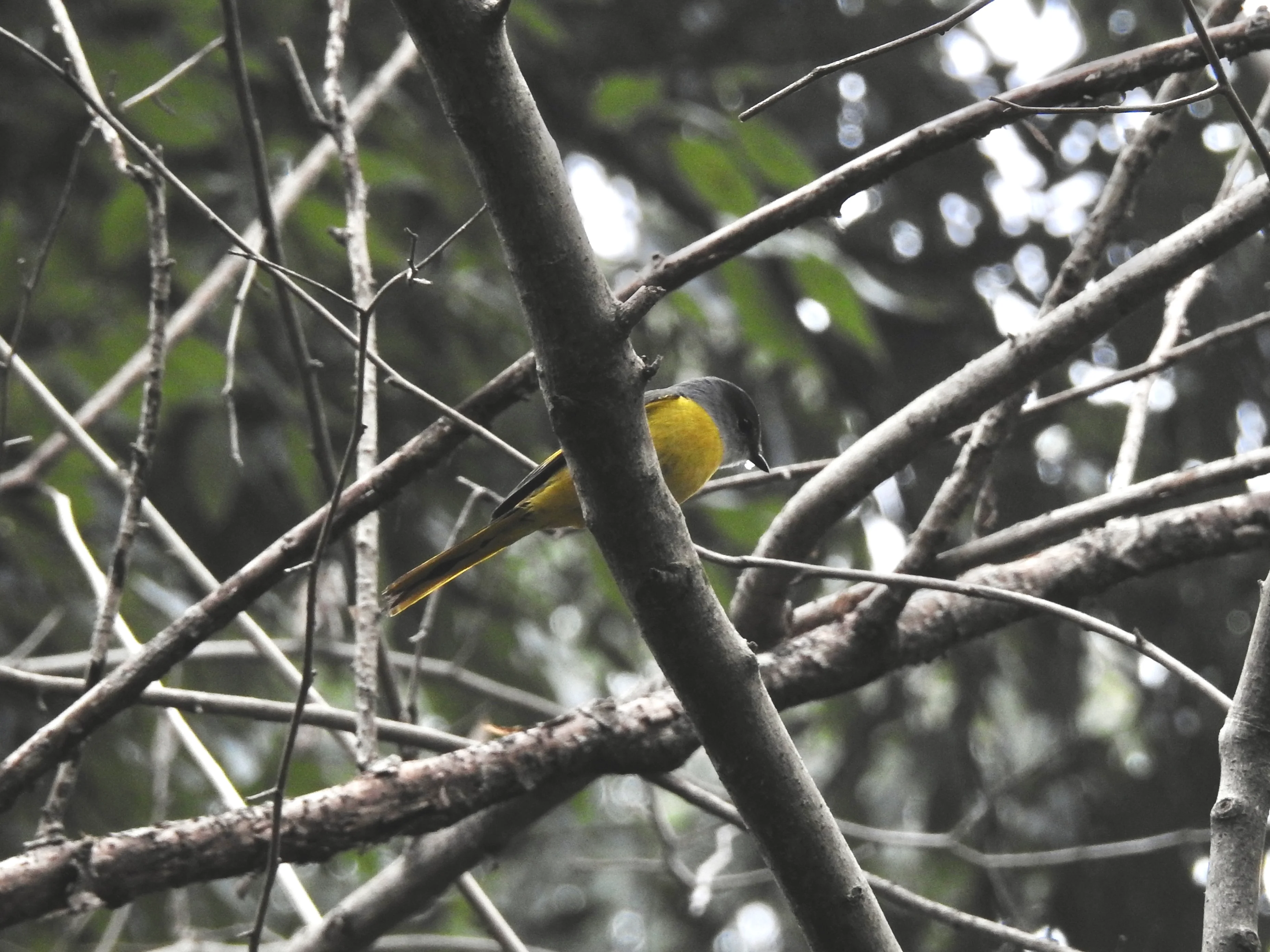 在这期间橙腹叶鹎也过来了,很可惜大逆光只欣赏到了它些许略带橙色的肚子,其他细节一概看不清……相机倒是能略微欣赏到它颇具热带风采的配色。