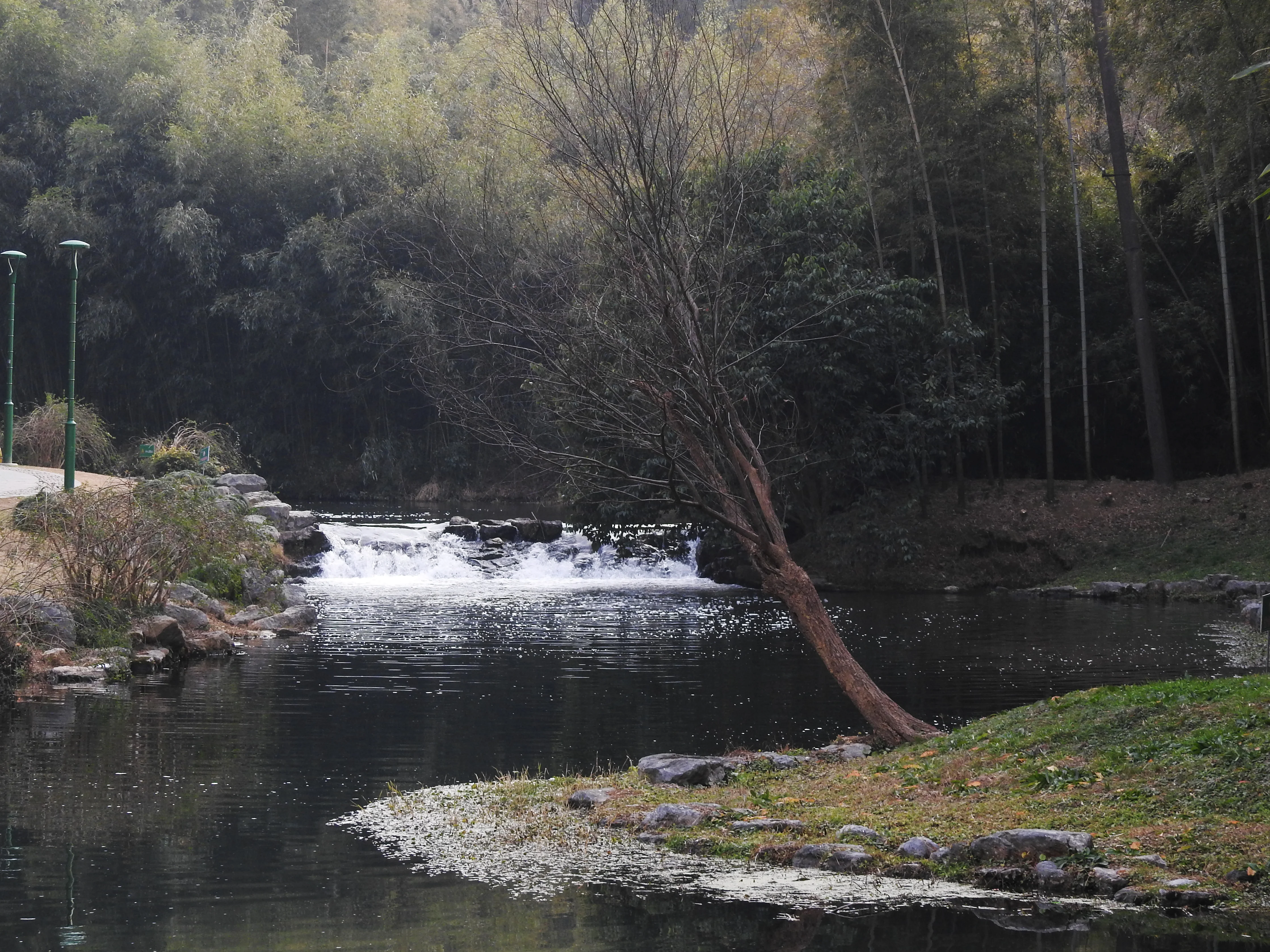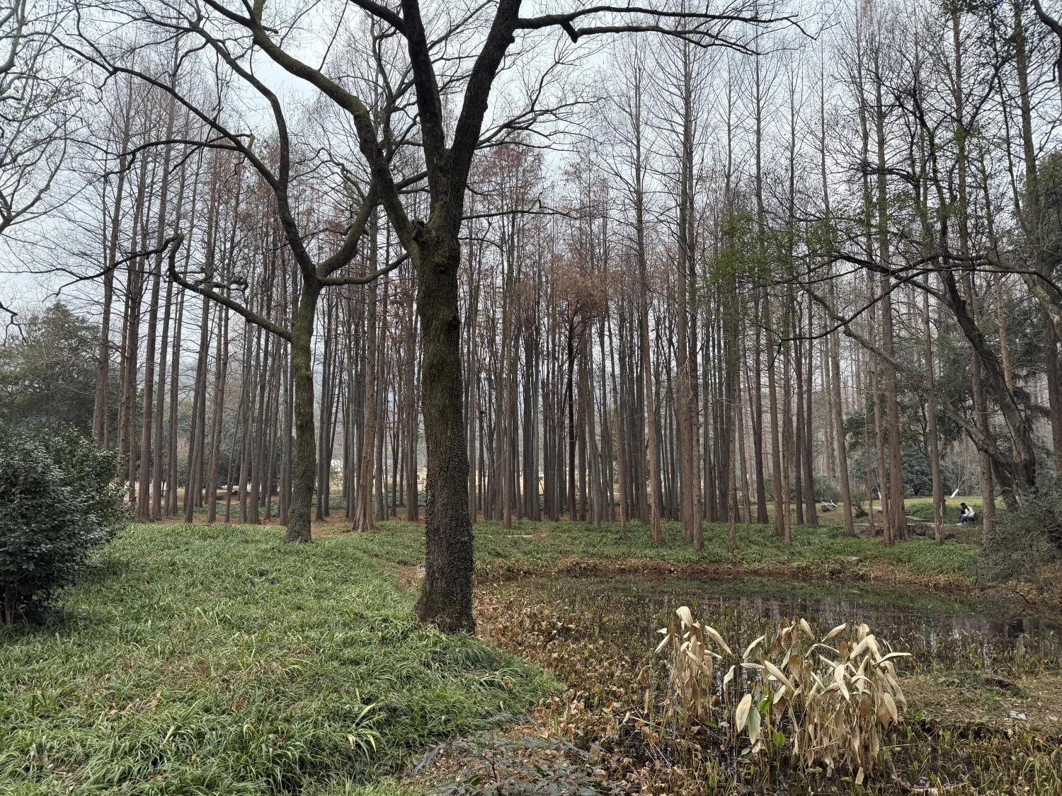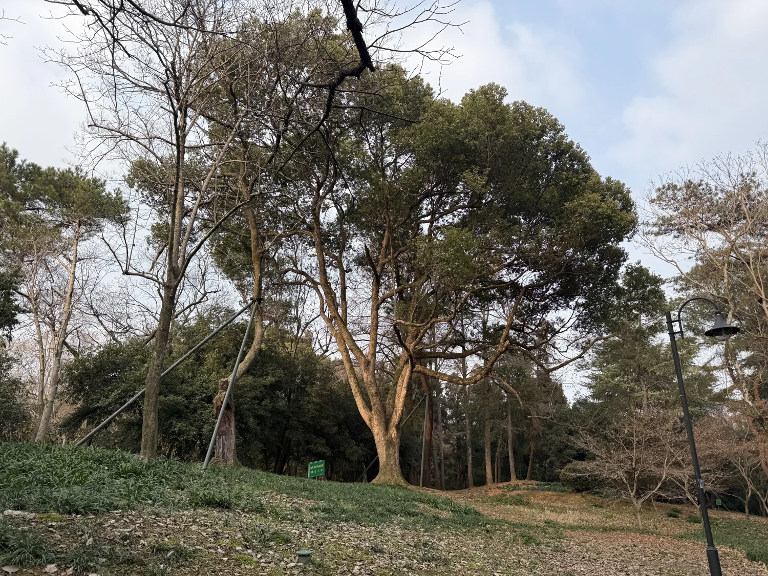眼看着时间就到了4点,因为有队友还有事我们就准备撤退了。阴了一天,太阳很调皮地在此时才漏了出来。我们一边快速往南门走去,一边欣赏杭植的美景。杭植其实建成时间比上海植物园还晚一点,但园内的树可能是借了山势,又或许是气候适合,竟比上海的树木还高大很多。