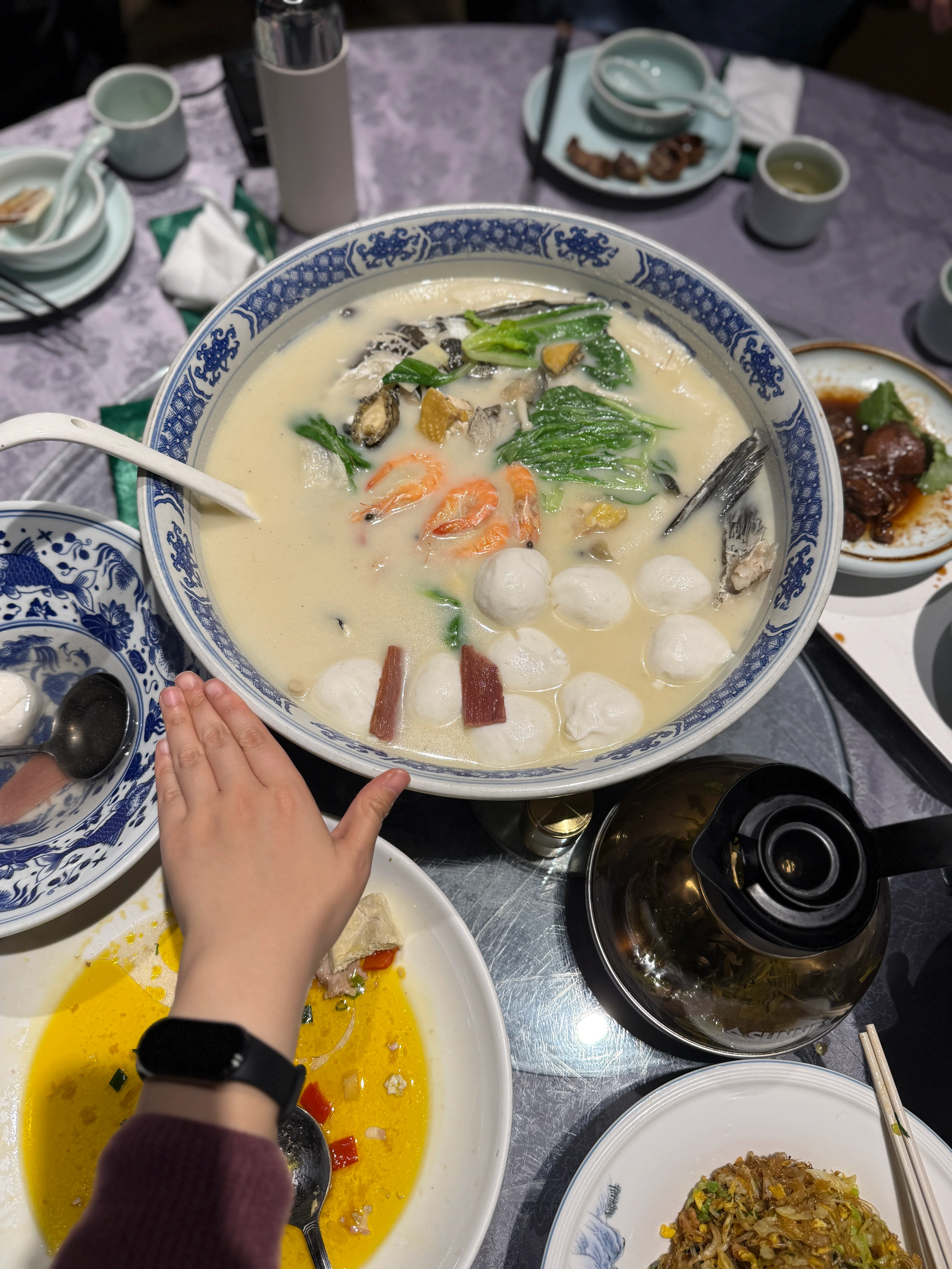 欣赏完头顶的山椒鸟大军后就是美食时间!尝试了山外山的鱼头煲+鱼丸,意外的好大一碗!菜品整体还挺不错的!