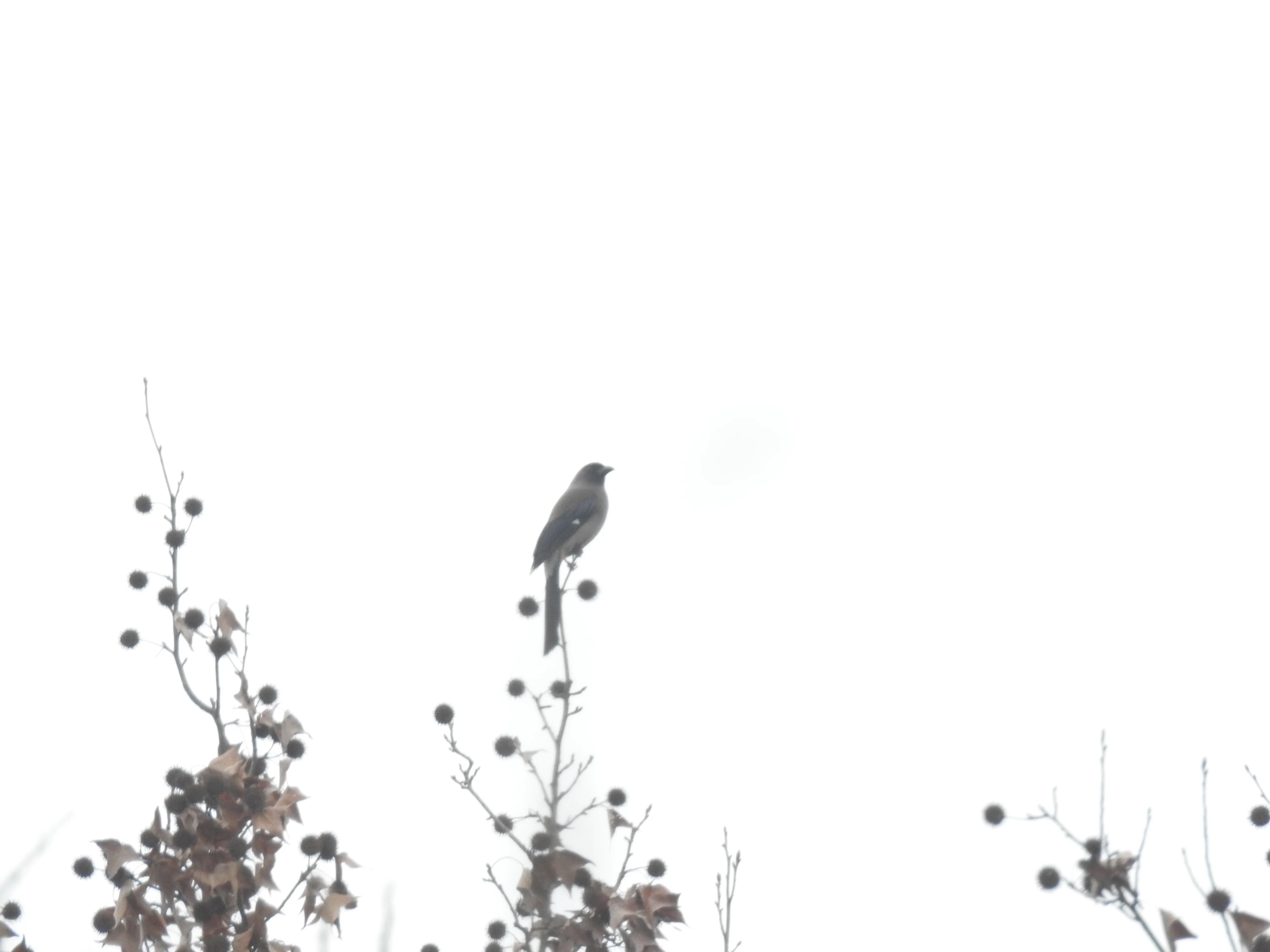 刚进植物园大门,天气阴沉而且有重度空气污染,一边还淅淅沥沥下着小雨。虽然天公不作美,但进门之后鸟况倒是不错。一上来就看到有观鸟团在介绍,凑近一听发现门口左右各有鸟群活动,灰椋鸟、燕雀、红嘴蓝鹊都在头顶上叽叽喳喳。我很好奇鸟在取食什么,观察了一会发现食物来源竟然是槲寄生!第一次知道杭州也有这个!