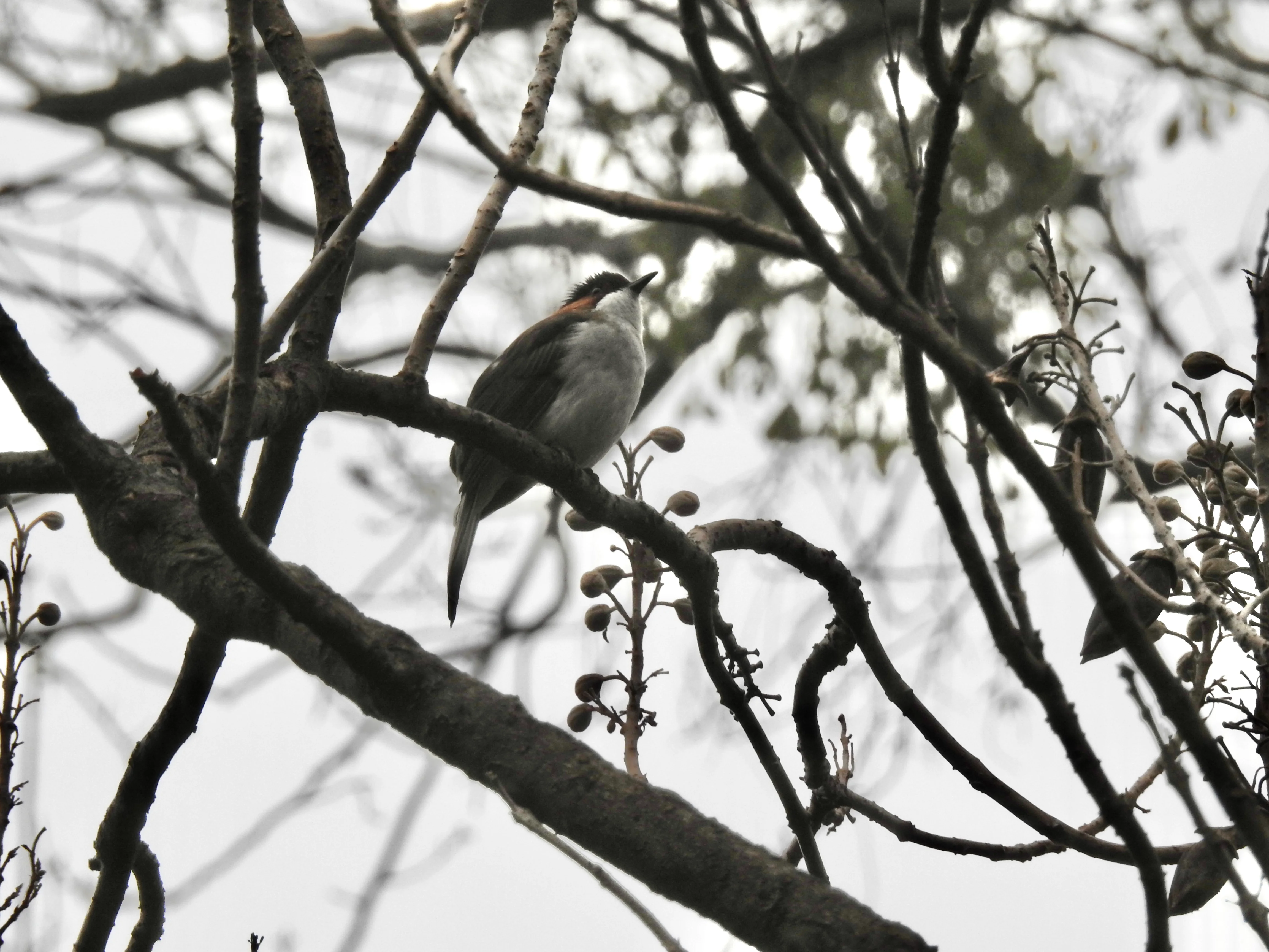 大嘴乌鸦附近的树上还停着几只鹎鹎,用望远镜一看,是栗背短脚鹎!其实我之前已经好几次在爬山时遇到过它,但只闻其声不见其身。这次终于给我看到了!