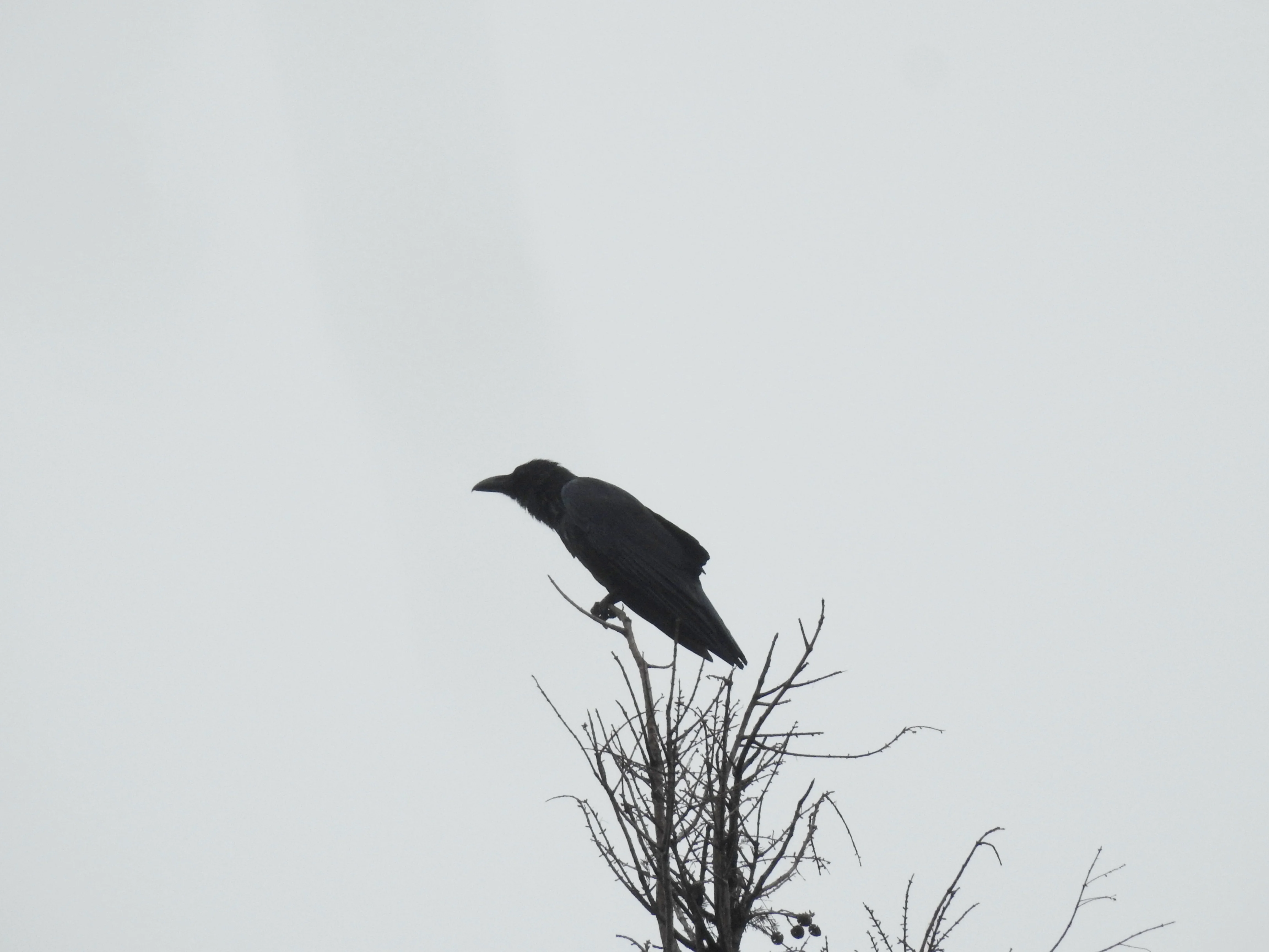 正走着突然听到枝头传来两声响亮的”啊!啊!“叫声,一抬头果然是有乌鸦!我当时还很自信地说这一定是小嘴乌鸦,结果回来检查照片时就被打脸了。