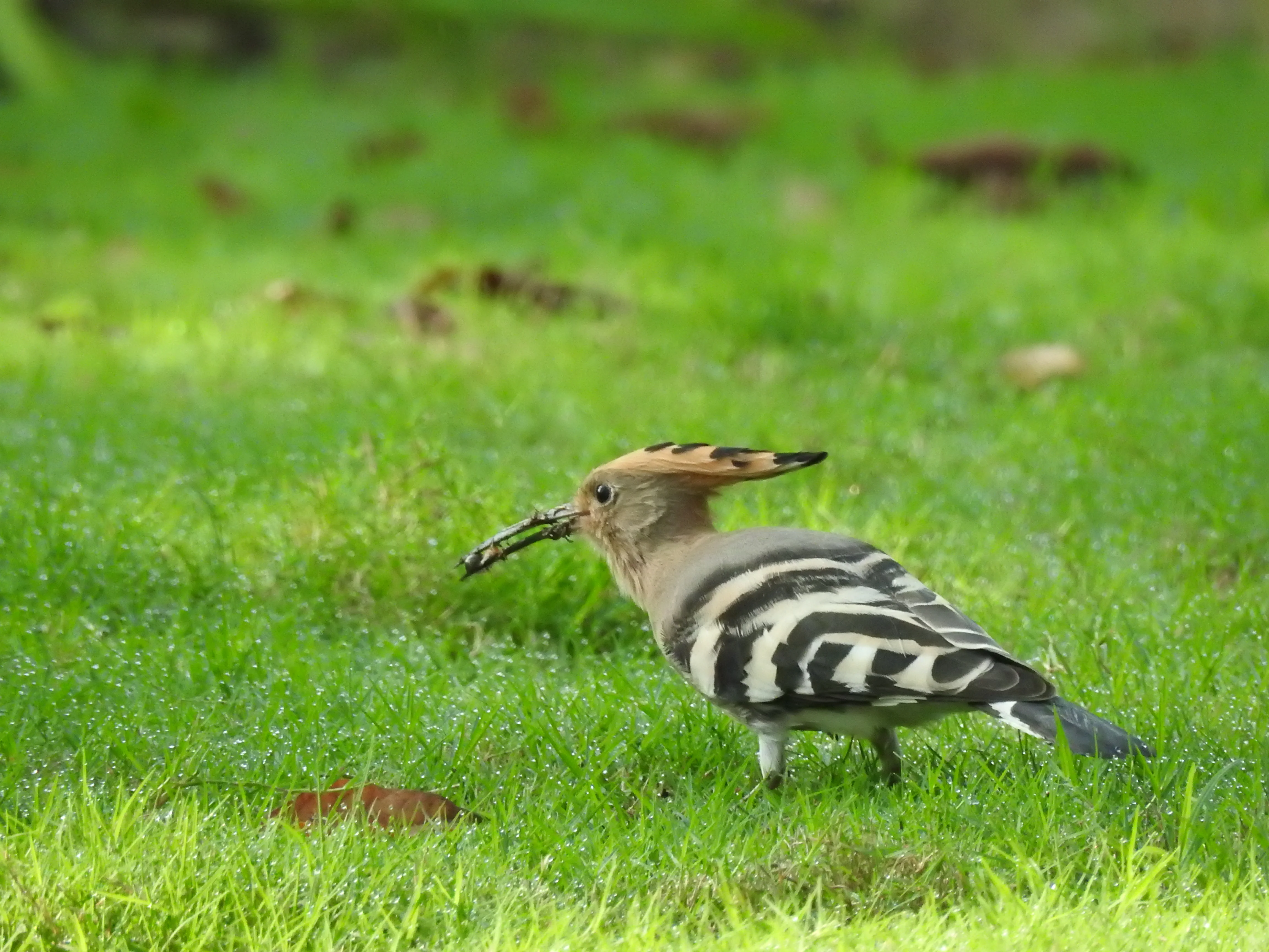 一只戴胜正在奋力啄食大地,看起来效率挺高,几乎每啄两下就看到它嘴里叼着吃的。在它忙活的时候,附近一只棕背伯劳突然对它发起了俯冲驱逐攻击,然而戴胜只是扑扇了两下翅膀就飞到远处继续啄地了。没有任何东西能阻止戴胜啄地!