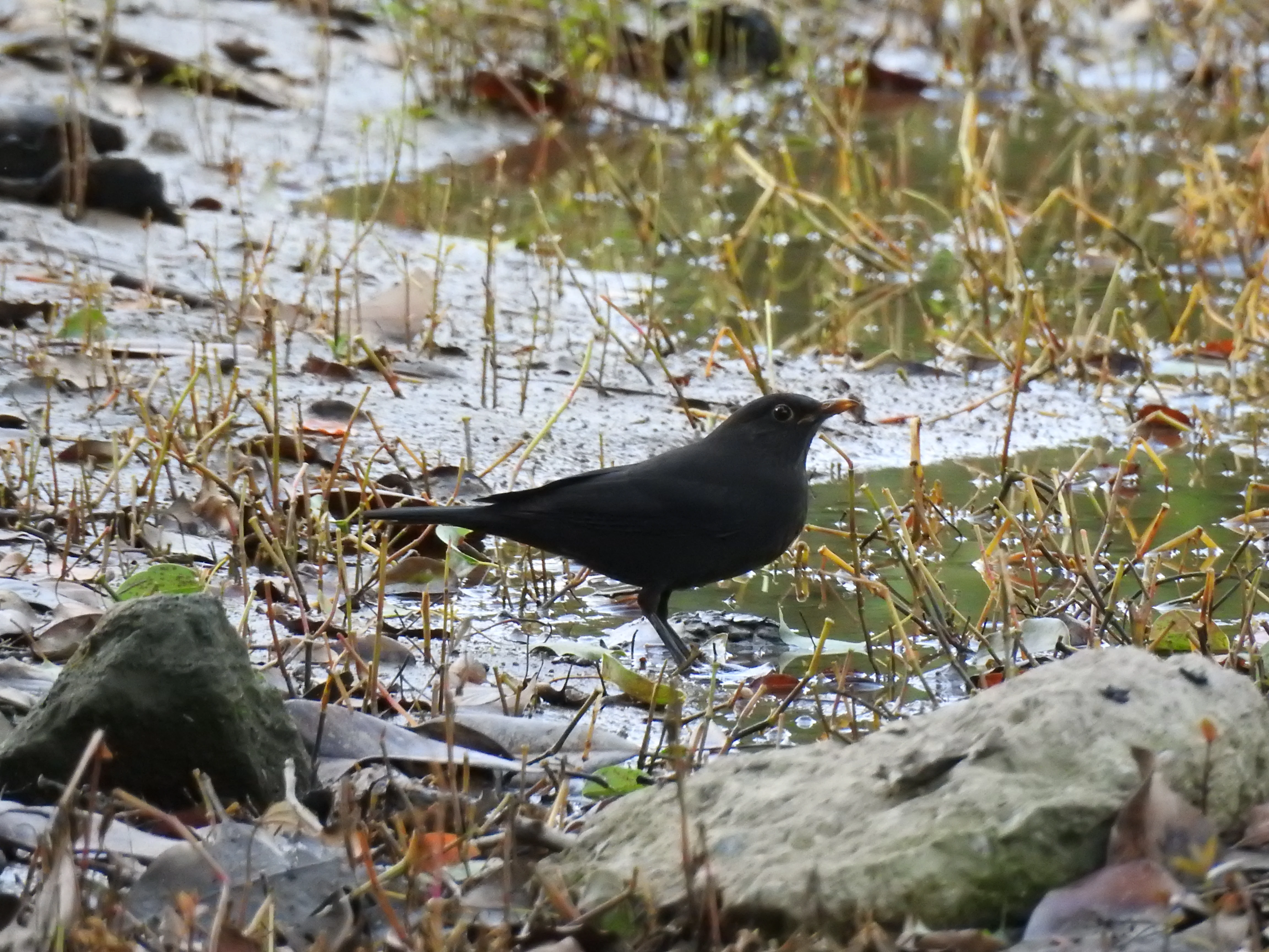 沿着小路继续前行,树木的种类变得奇怪起来,悬铃木、栾树、樟树、棕榈——这组合可以说是毫无道理,但灰喜鹊们似乎对这片林子十分中意,大概是食物比较丰富吧。林下的落叶也很多,吸引了一些鸫鸫前来翻叶觅食。