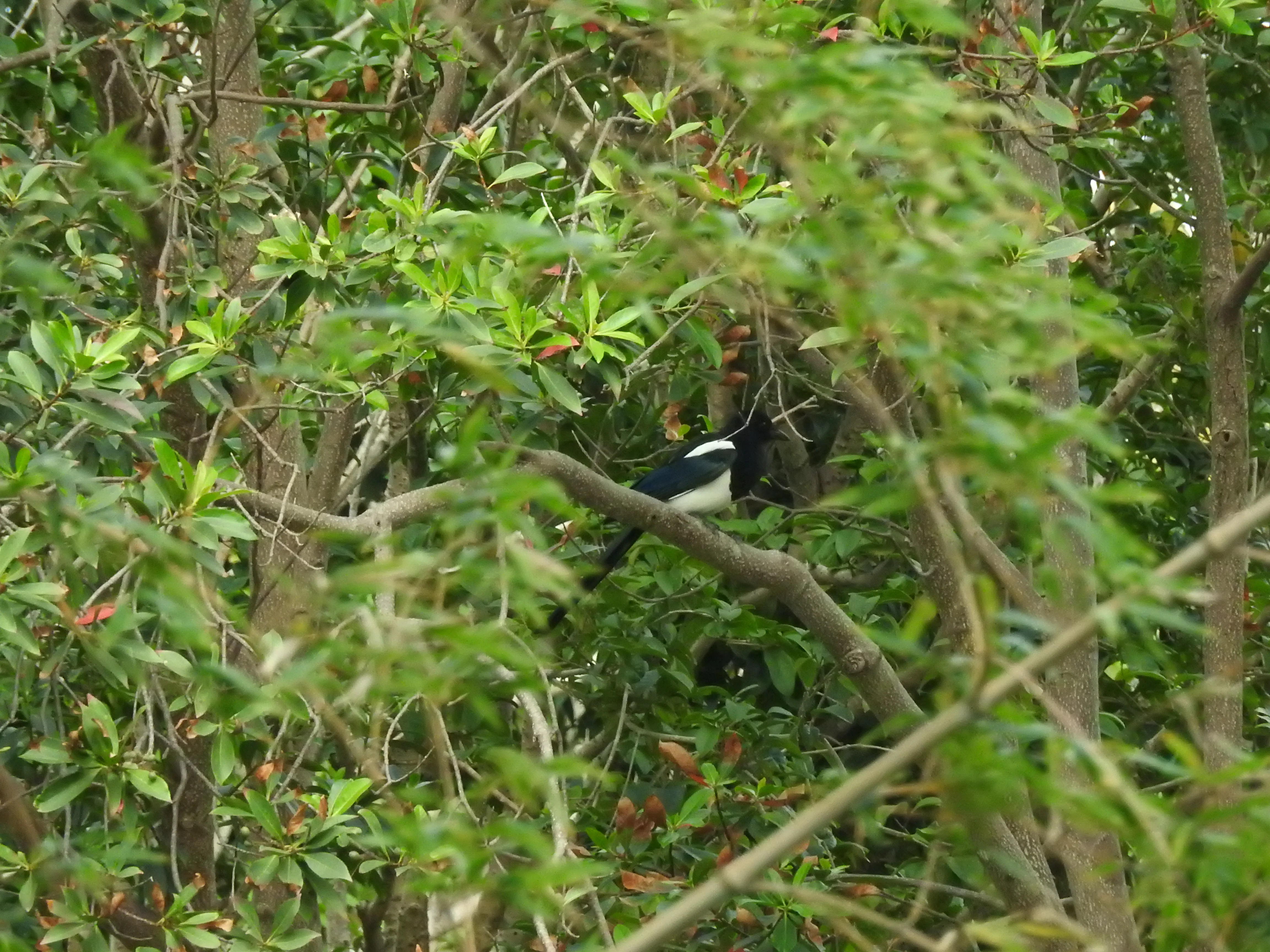 比较惊喜的是之前在这附近看到的黑领椋鸟没有走!和喜鹊、灰喜鹊一起在这活动。这附近的乌鸫还在学它电音,我就说为什么这鸟叫听起来这么怪!郊区的鸟和市区果然是不太一样,这边的鹊鸲也有我没听过的调子,棕背伯劳还学了灰喜鹊叫,互相乱学啊你们这是!