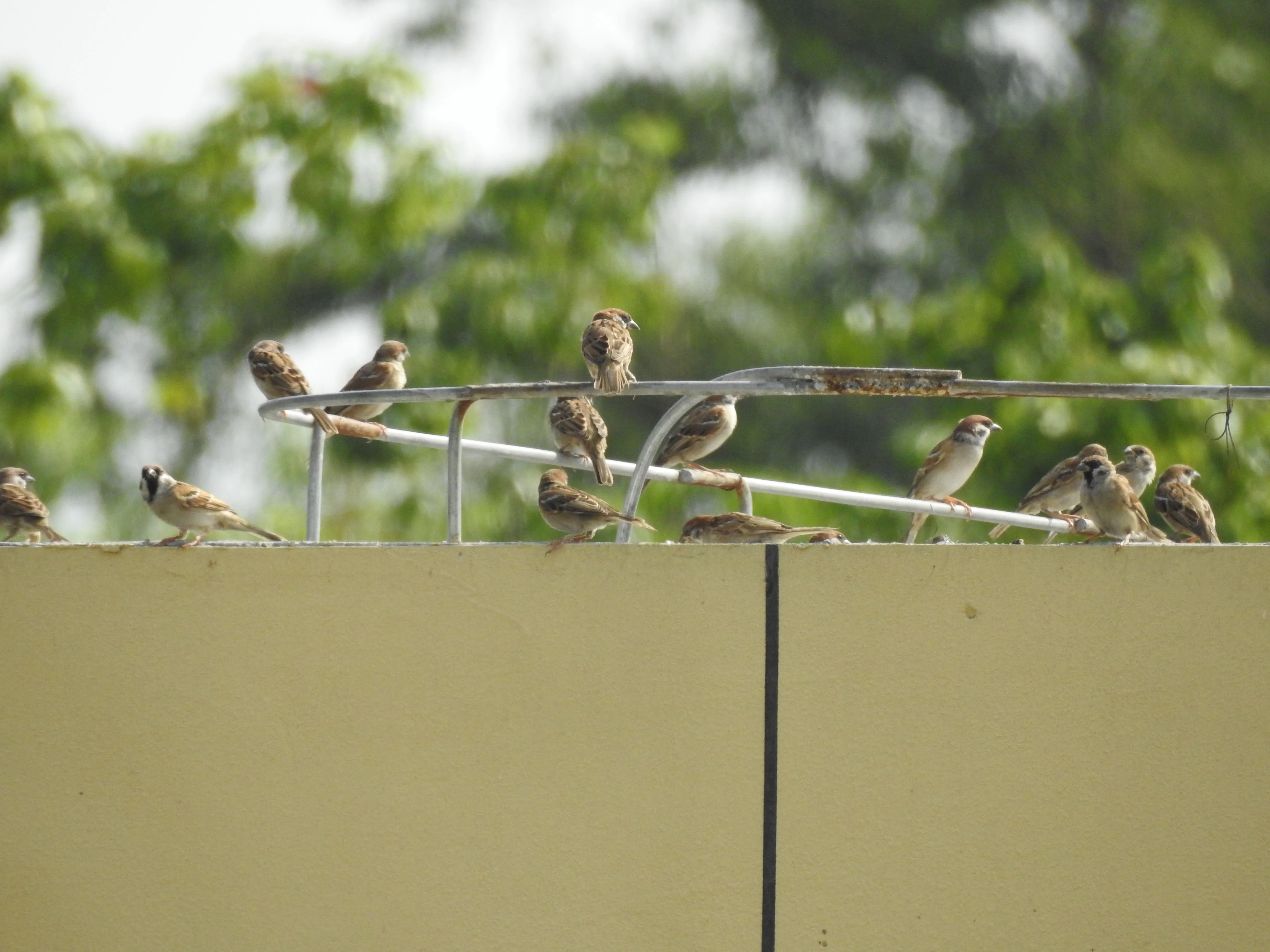 从小树林迂回往荒地走,发现了一条土路,正好可以看到荒地较为开阔的视野。先前叽叽喳喳的鸟鸣有了答案——原来是将近百只麻雀在开大会!它们一直在不断地小群移动着,每一群都保持着大概20-30只的规模。虽然麻雀是非常常见的都市鸟类,但我有一阵没看到这么多数量聚集在一起了。荒地周围的草地上有随处可见的蝗虫和蚂蚱,也许说明这片小小荒地有足够支撑它们的食物?