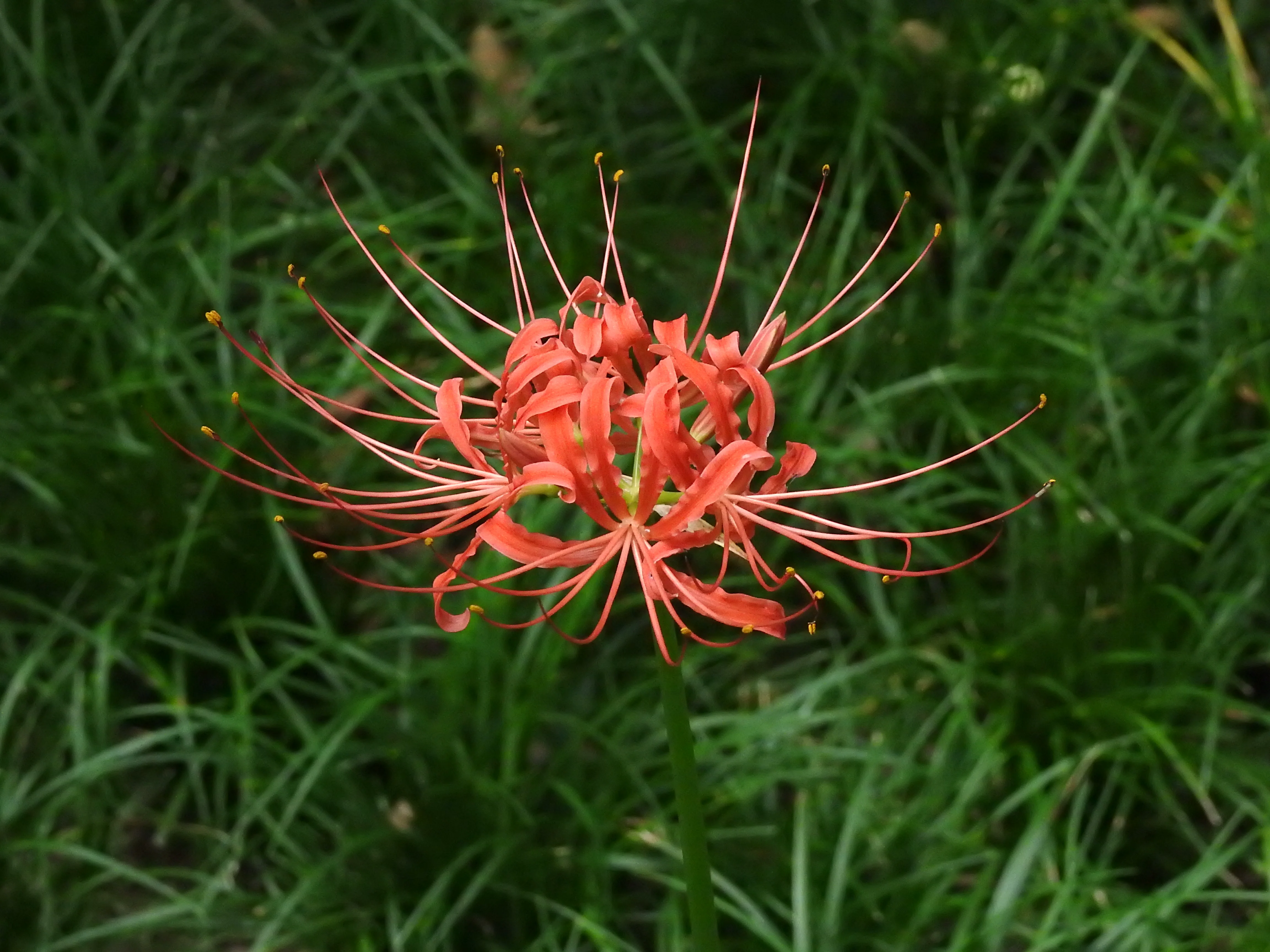 石蒜也悄悄地在林间开了几朵。稀稀拉拉无人理睬。但我倒是觉得单朵欣赏起来也很美丽……
