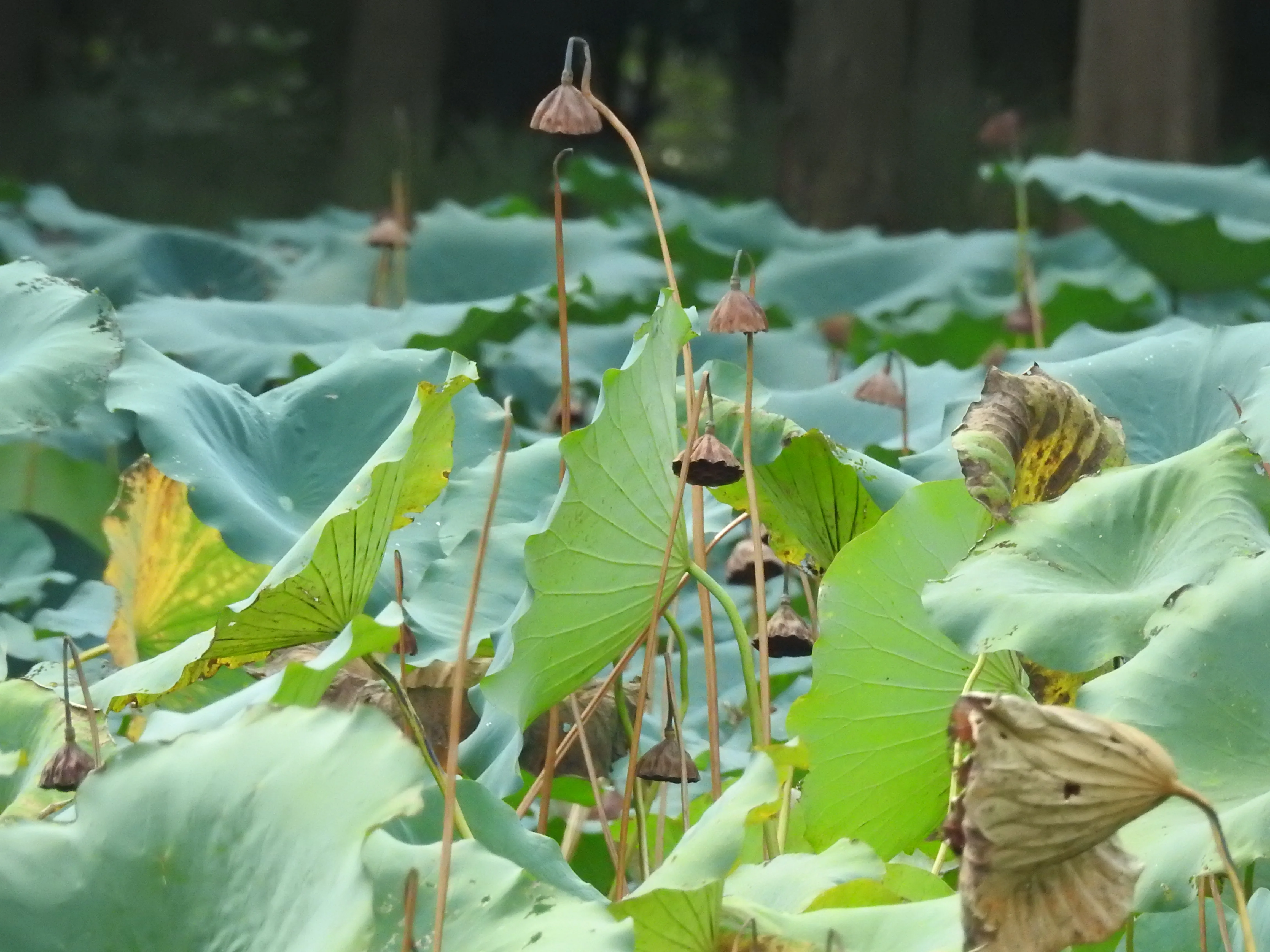 荷塘的荷花已经落幕,只剩下满池的荷叶和沉默注视着水面的莲蓬。寻觅了下小翠和黑水鸡的身影,未果。
